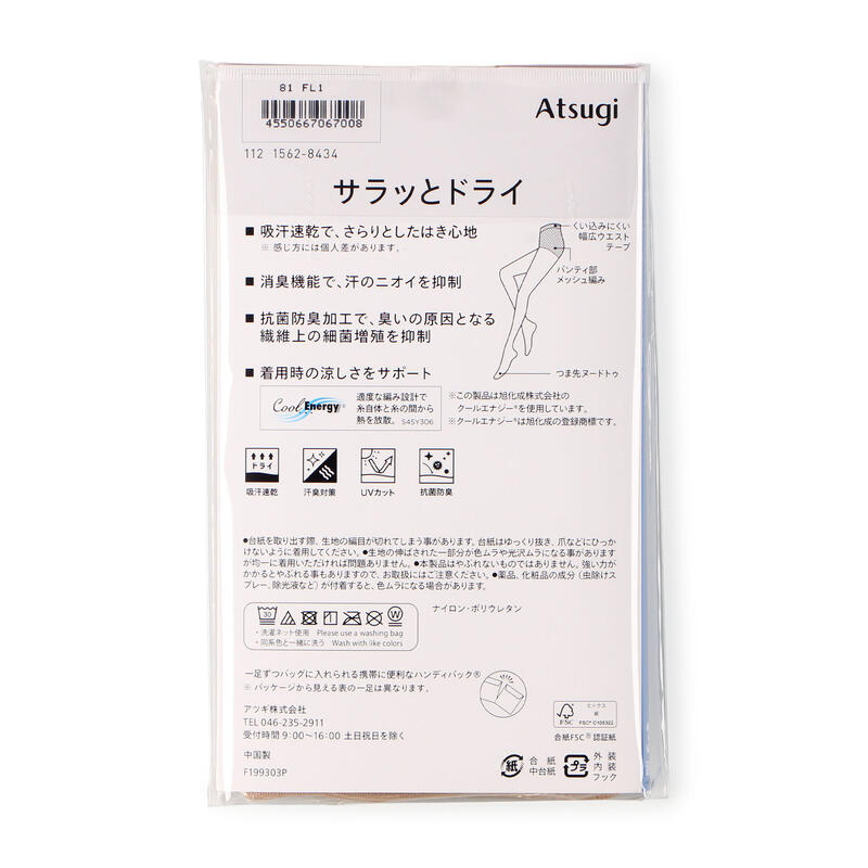 クールエナジーで着用時の涼しさをサポート、UV対策加工、パンティ部メッシュ編み、ヌードトゥ