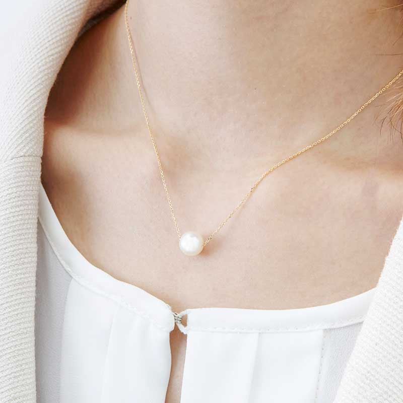 ◆チェーン:種類アズキ 長さ40cm ◆素材:K10PG ◆真珠:種類アコヤ真珠 珠サイズ9.0mm