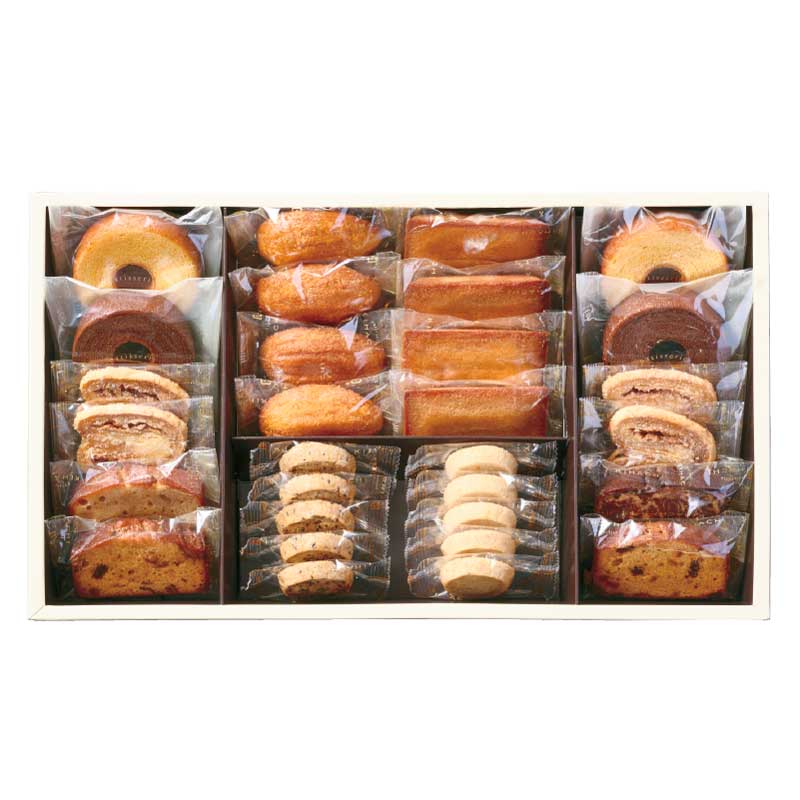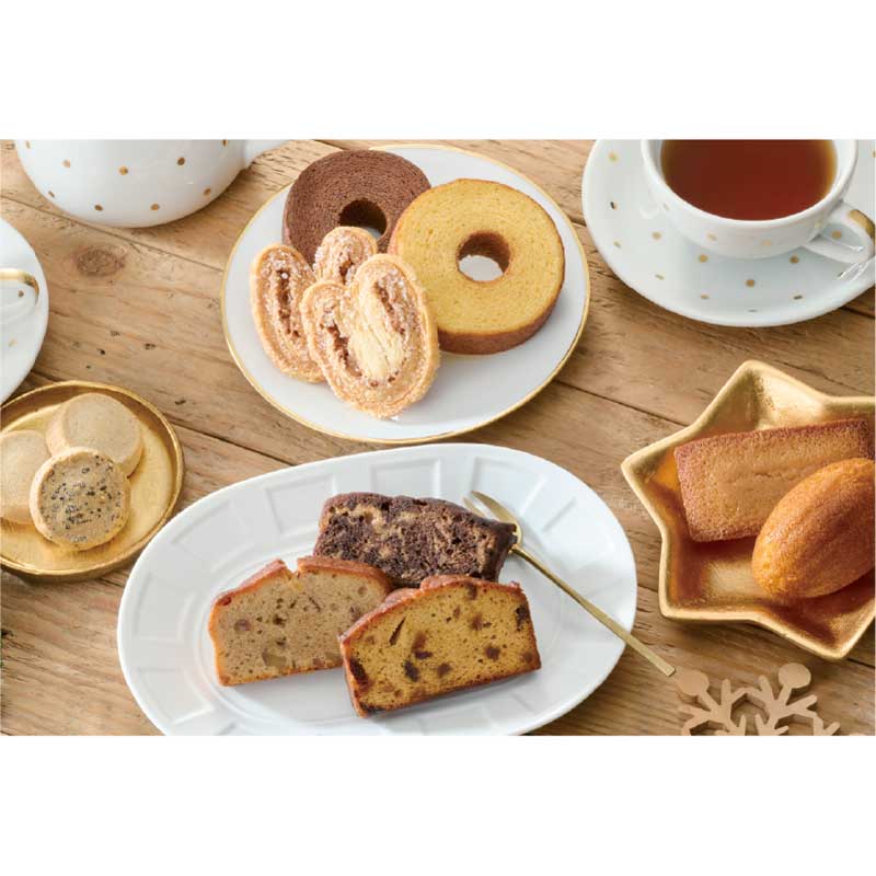 フィナンシェ・はちみつマドレーヌ・パルミエ×各4、ケークアングレ・バームクーヘン(プレーン・ショコラ)×各2、