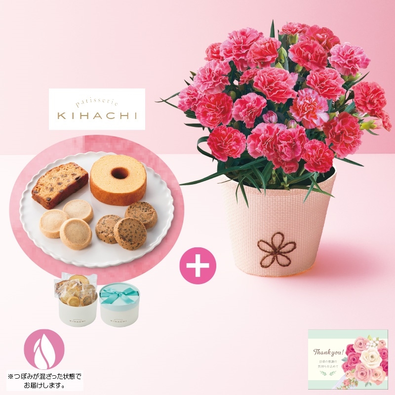 - 【母の日】カーネーション(ももりーな)と「パティスリーキハチ」アソートBOX