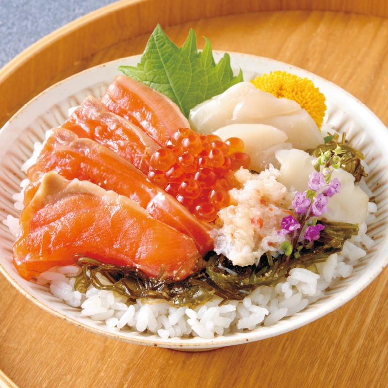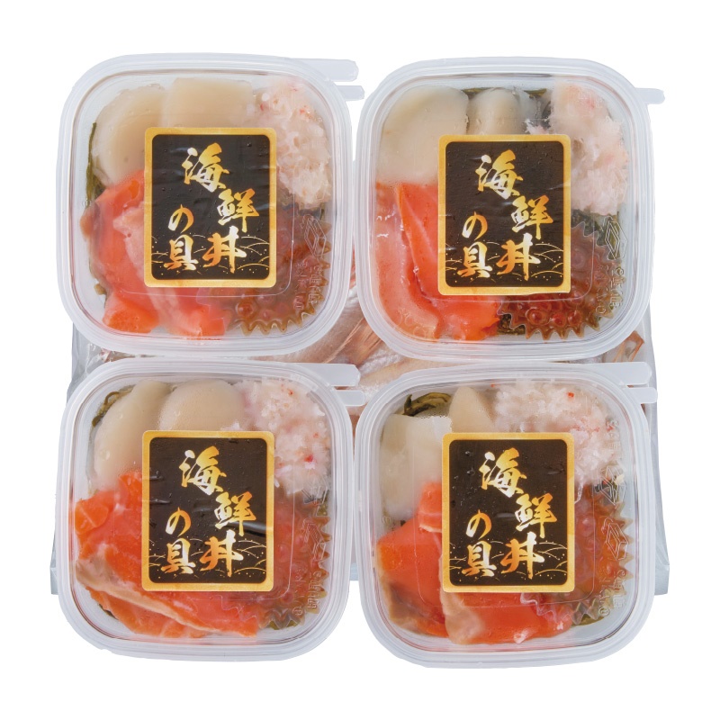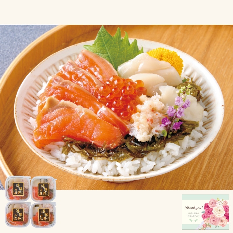 海鮮丼の具48g(トラウトサーモン・帆立・紅ずわいがにむき身・いくら醤油漬・味付刻み昆布)×4、メッセージカード付