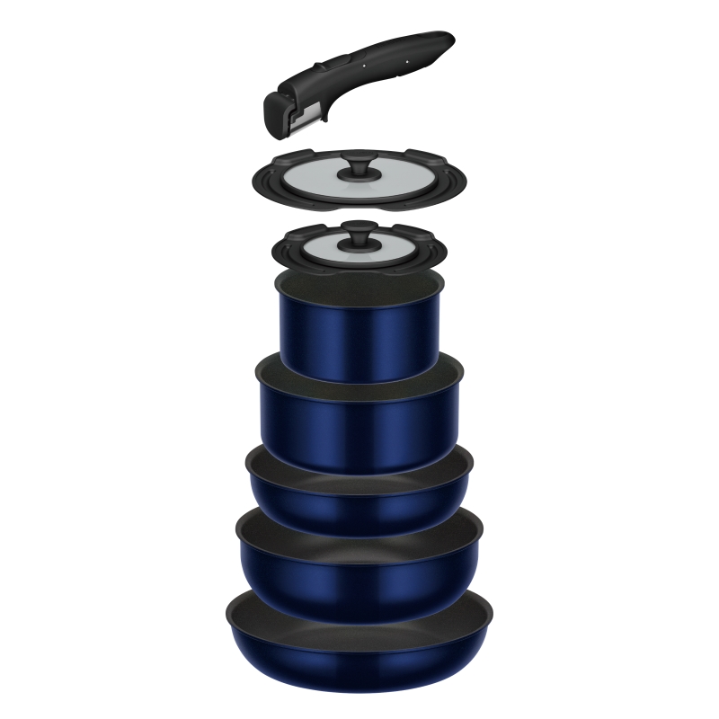 ガス火専用。フライパン・鍋5点に取っ手やフタがセットになった充実の8点セットです。