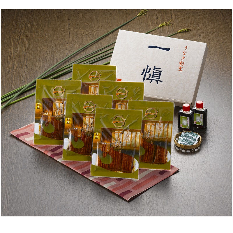 蒲焼カット55g×6袋(愛知県産 養殖)、山椒×6袋、蒲焼きのたれ50ml×2本