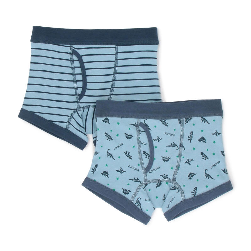 トドラー男児に最適なプリント柄やボーダー柄・無地などの組み合わせの2枚組ボクサーです。