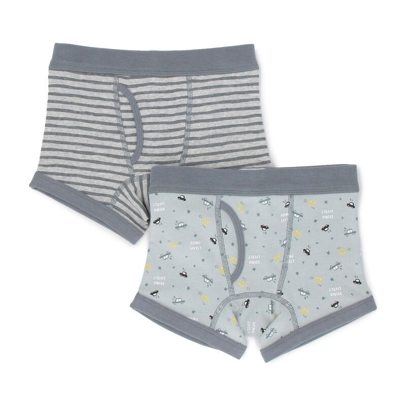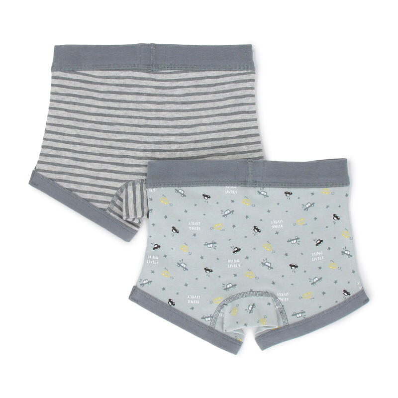 トドラー男児に最適なプリント柄やボーダー柄などの組み合わせの2枚組ボクサーです。