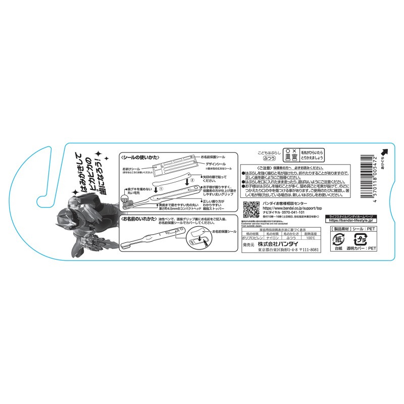 - ●柄…ポリプロピレン●毛…ナイロン●透明カバー、シール…PET●台紙…紙