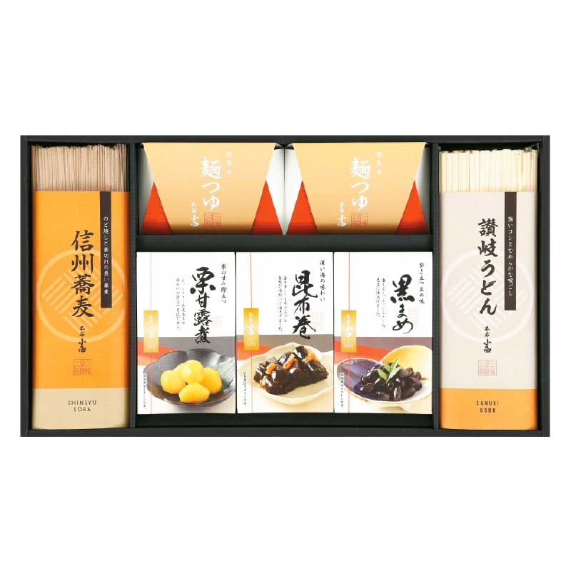 信州そば160g×1、讃岐うどん180g×1、昆布巻85g×1、黒豆50g×1、