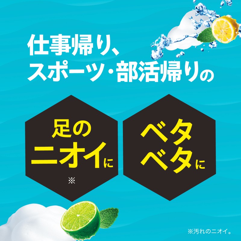 ●30秒ラク洗いするだけで簡単にフットケアができる「ジェット泡足洗いソープ」です。