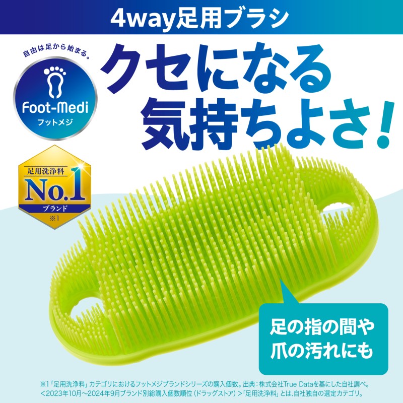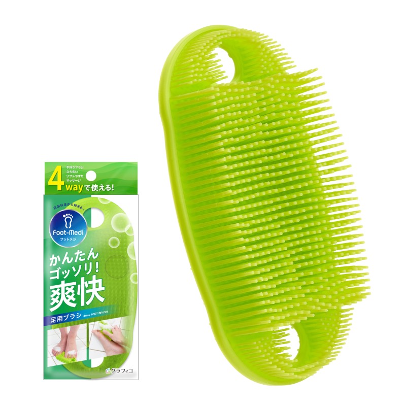 ●洗いながら足の悩みをまるっとオフする、手のひらサイズの「4way足用ブラシ」です。