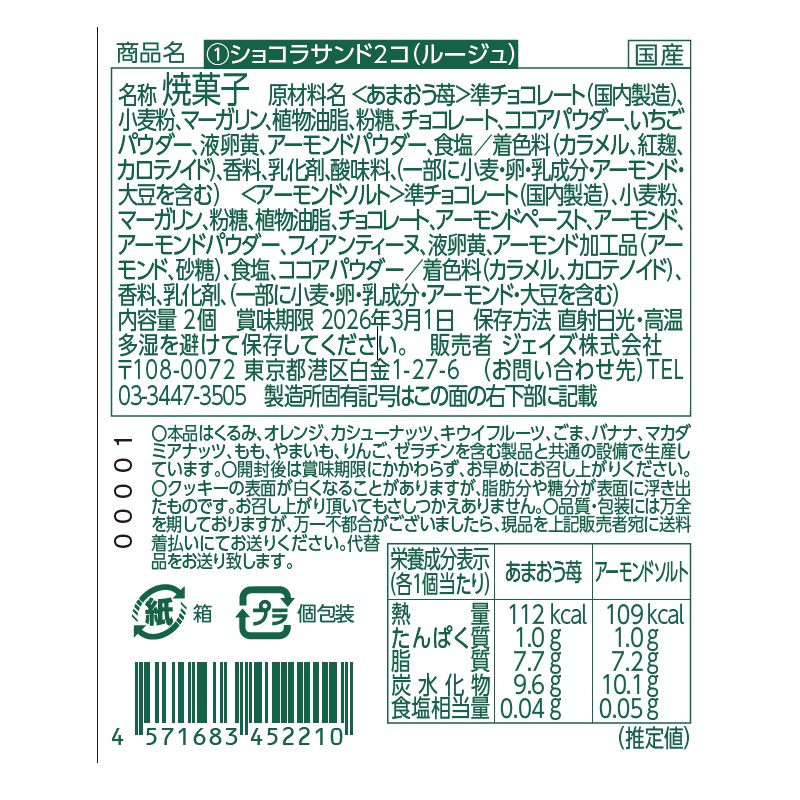 あまおう苺とアーモンドソルトのサクッとクッキーショコラサンド