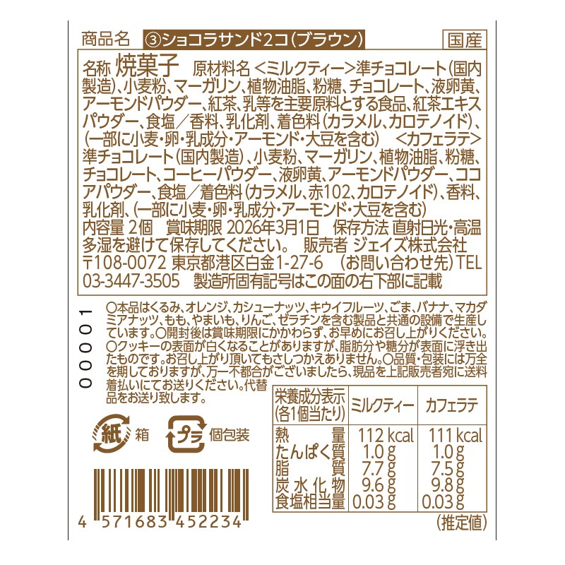 カフェラテとミルクティーのサクッとクッキーショコラサンド
