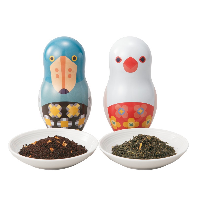 夏みかん紅茶×1、桜煎茶×1、コトリョシカ缶ハシビロコウ×1、コトリョシカ缶白文鳥×1