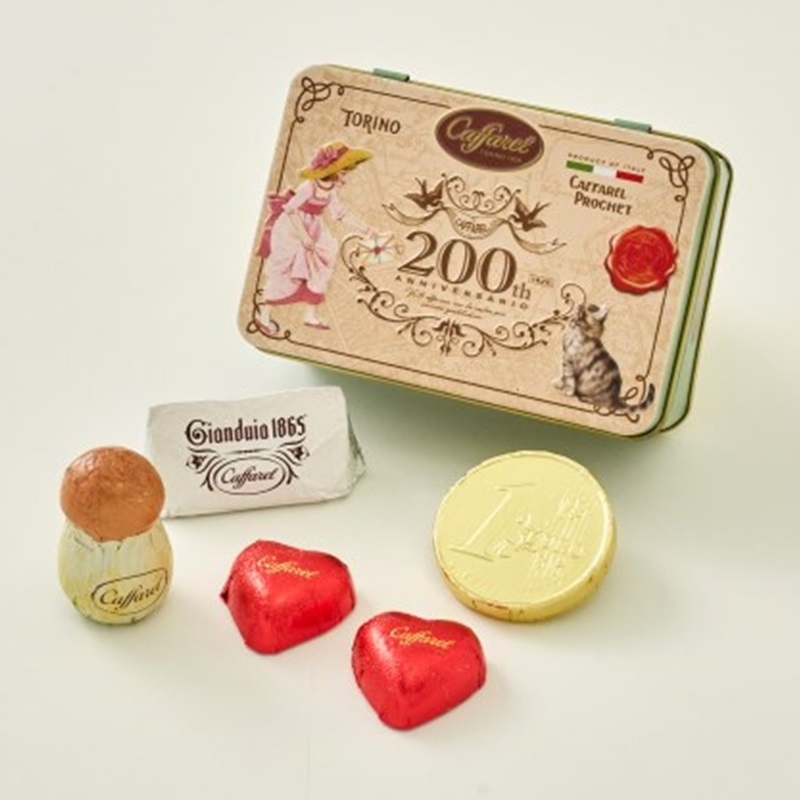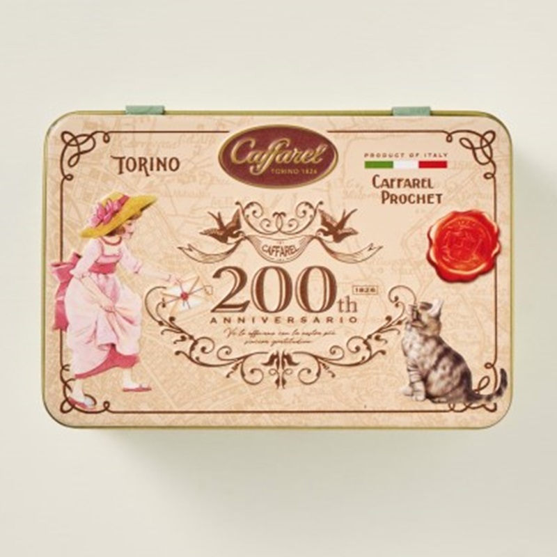 カファレルイラストの女の子と猫の手紙のやり取りが可愛い缶。
