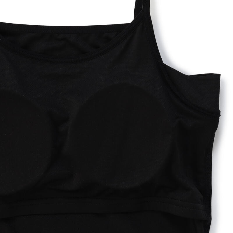 通気性の良いメッシュ素材を使用したカップつきキャミソール。