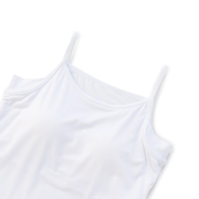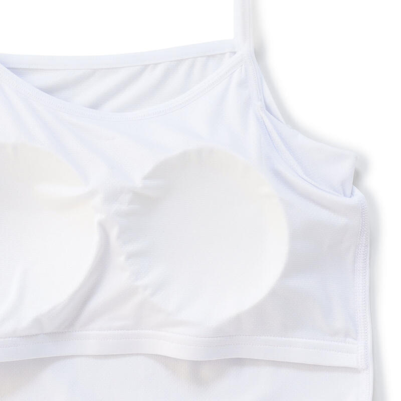通気性の良いメッシュ素材を使用したカップつきキャミソール。