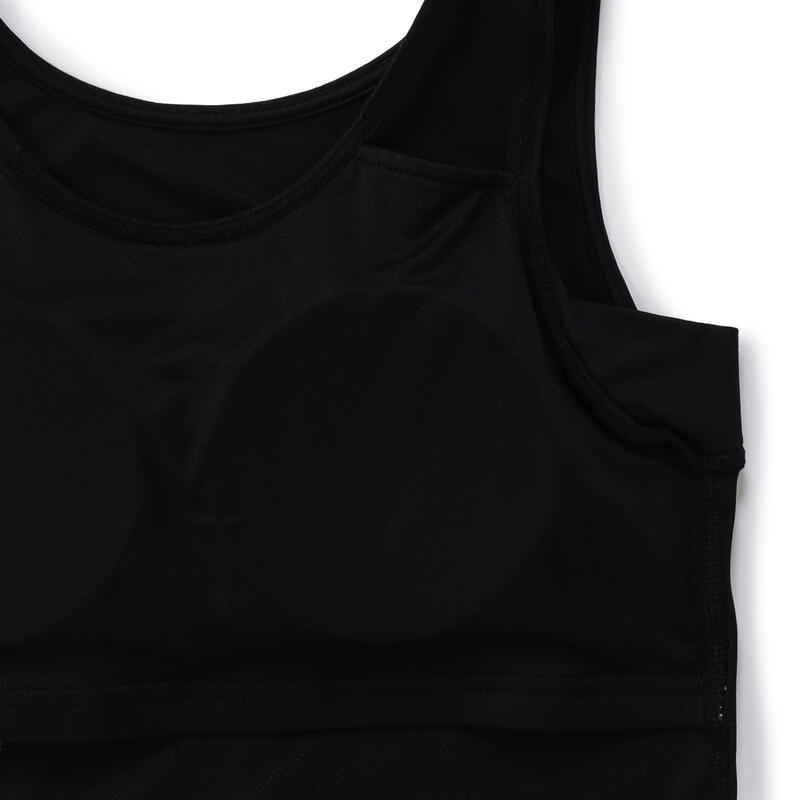 通気性の良いメッシュ素材を使用したカップつきタンクトップ。