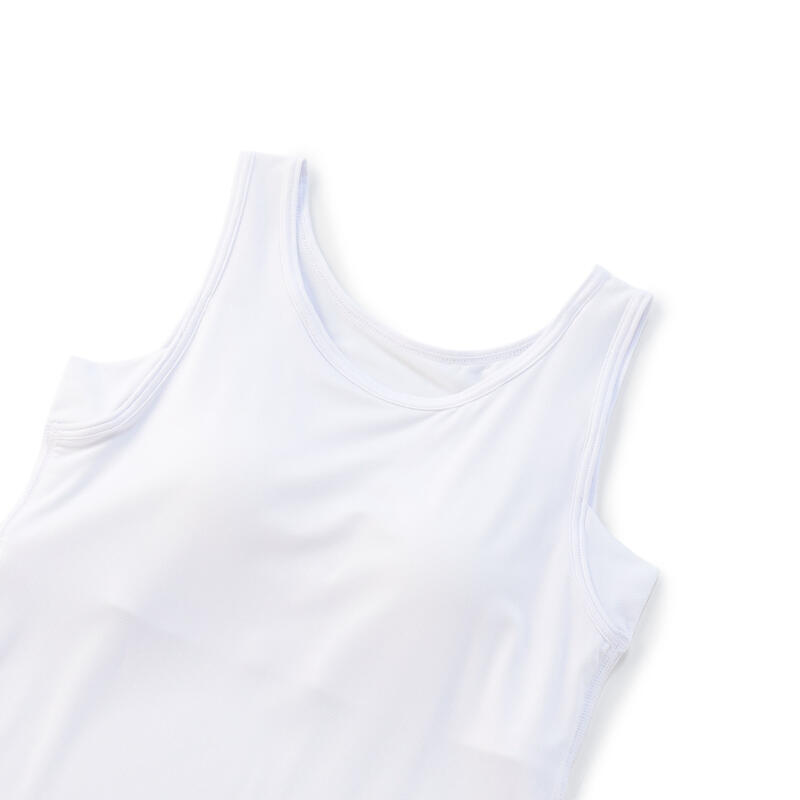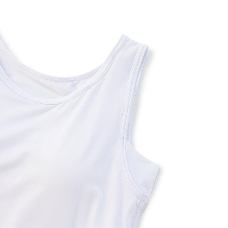 通気性の良いメッシュ素材を使用したカップつきタンクトップ。