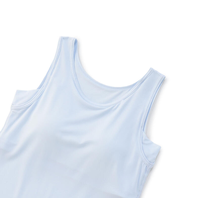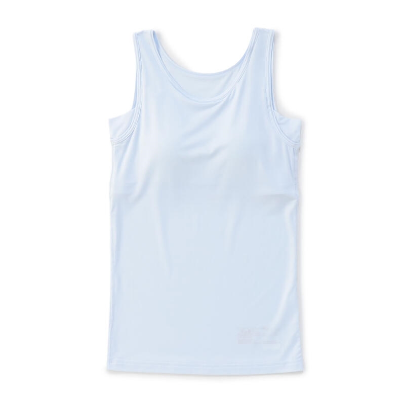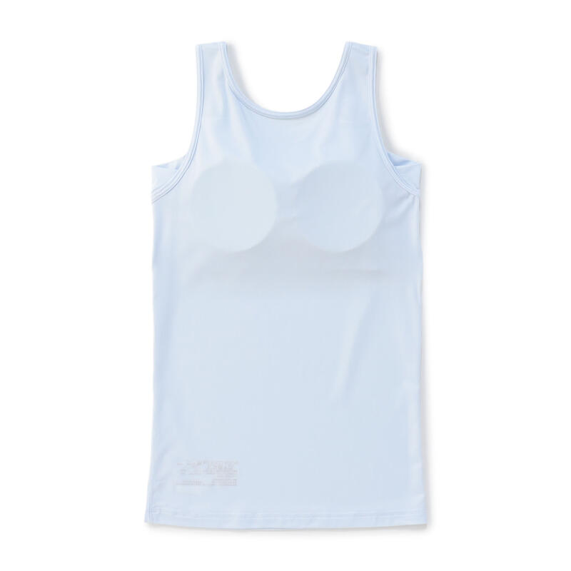 通気性の良いメッシュ素材を使用したカップつきタンクトップ。