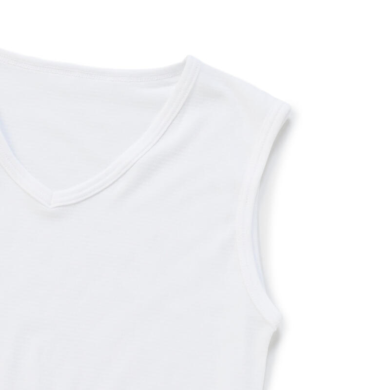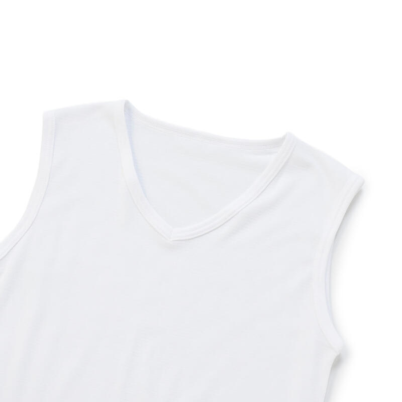 通気性に優れた、さらっとした肌ざわりが心地良いVネックのノースリーブ。
