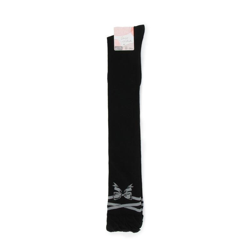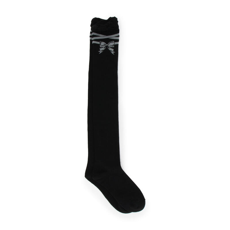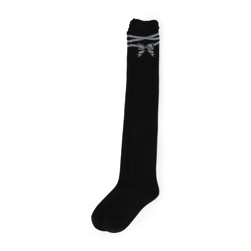 大きなリボンの柄が入ったカワイイデザインのハイソックス。