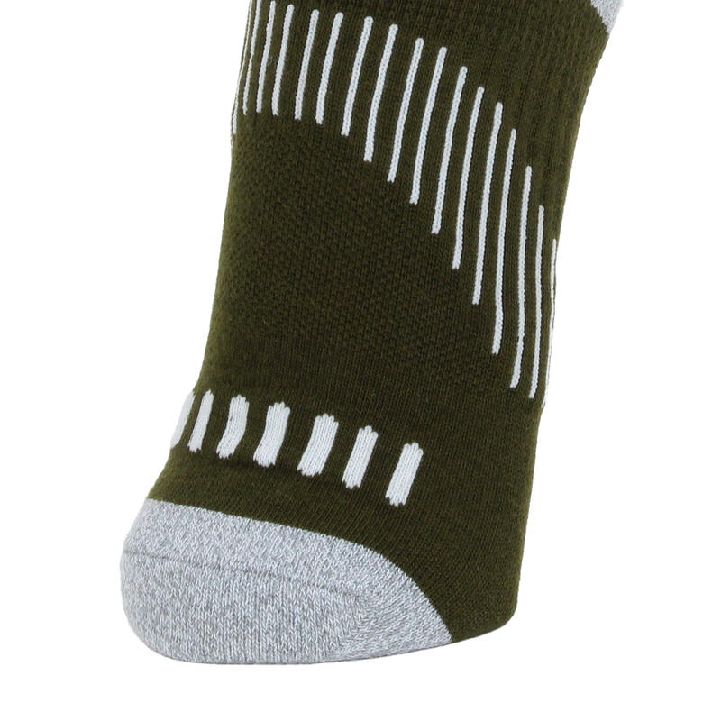 サポートゴム入りで動きにフィット、つま先かかと補強機能付き