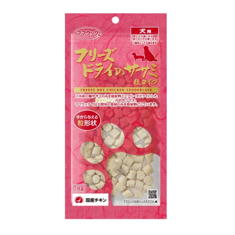 ・ママクック1番人気のササミを粒タイプにした、鶏ササミ100%無添加おやつです。