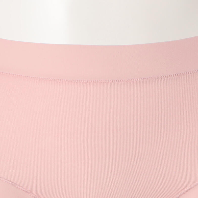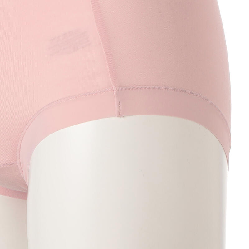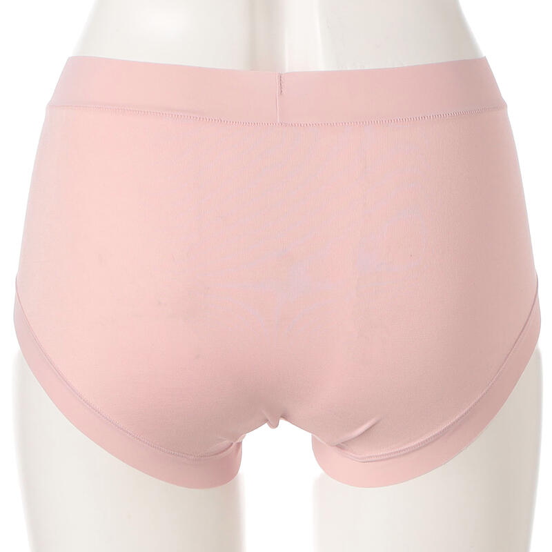 ウエストと足口はゴム不使用の幅広テープ仕様で締め付けにくく、フィット感が良く着ていることを