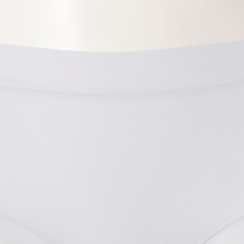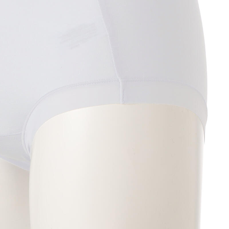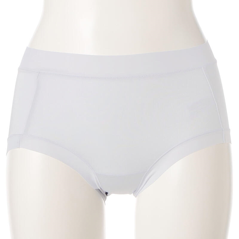 ウエストと足口はゴム不使用の幅広テープ仕様で締め付けにくく、フィット感が良く着ていることを