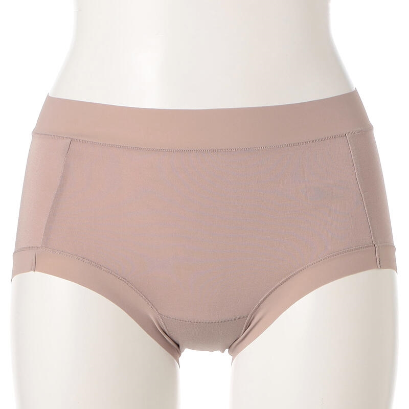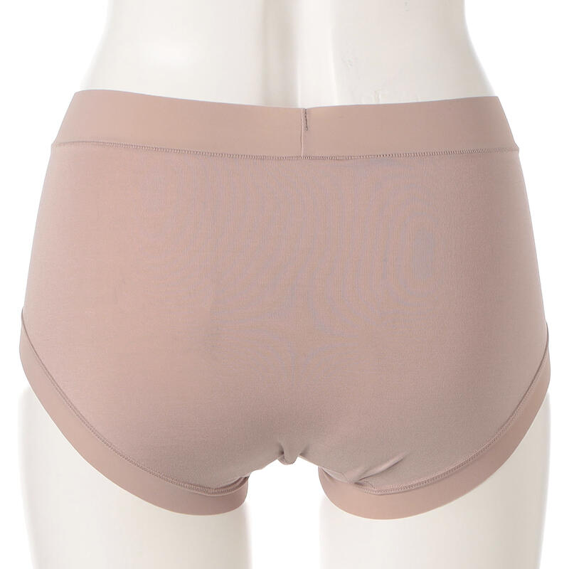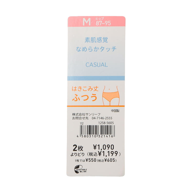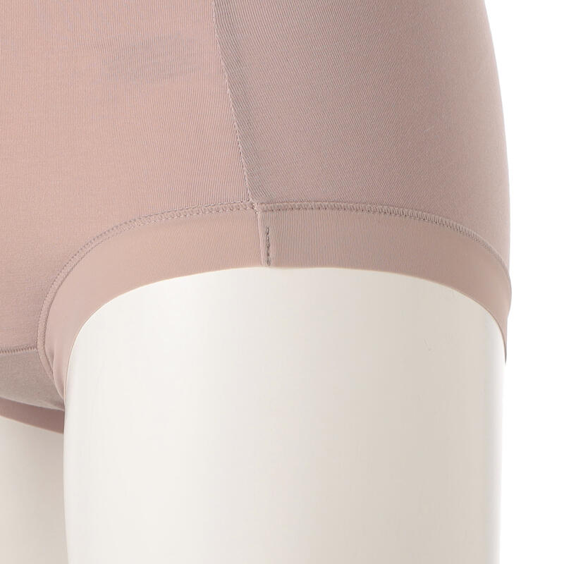 ウエストと足口はゴム不使用の幅広テープ仕様で締め付けにくく、フィット感が良く着ていることを