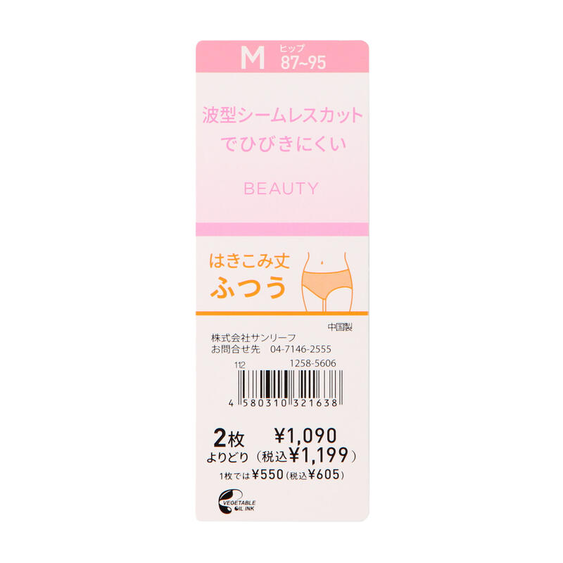 足口はなみなみカットのシームレスでアウターにひびきにくいショーツです。
