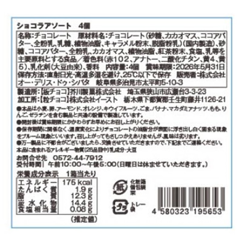 シェ・シバタ得意の「キャラメル」をテーマにした4種のショコラの詰め合わせ。