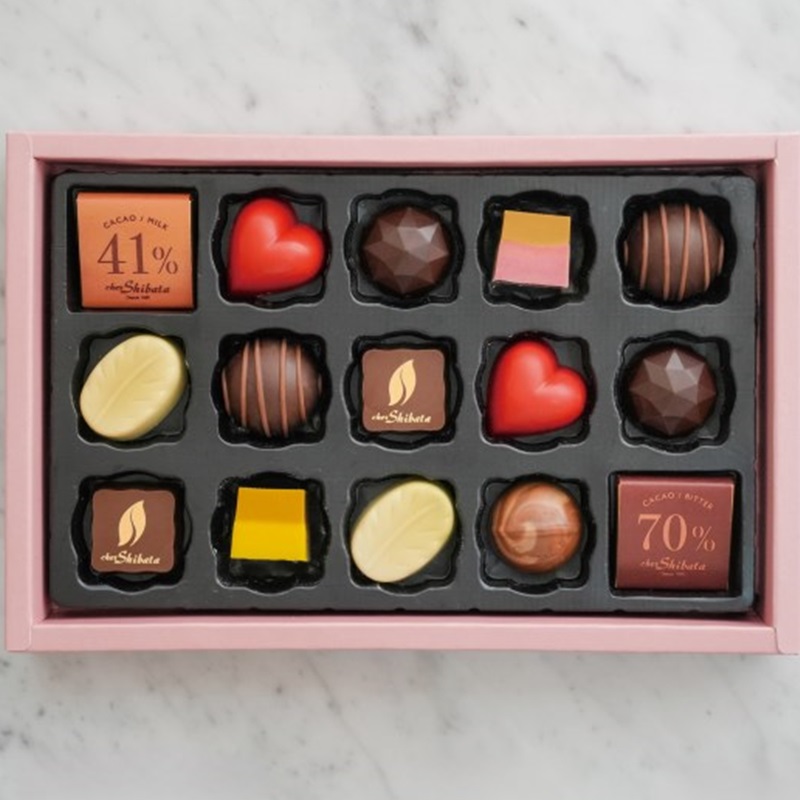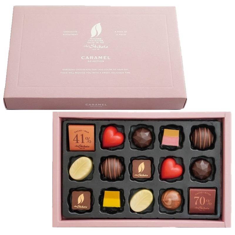 シェ・シバタ得意の「キャラメル」をテーマにした10種ショコラの詰め合わせ。