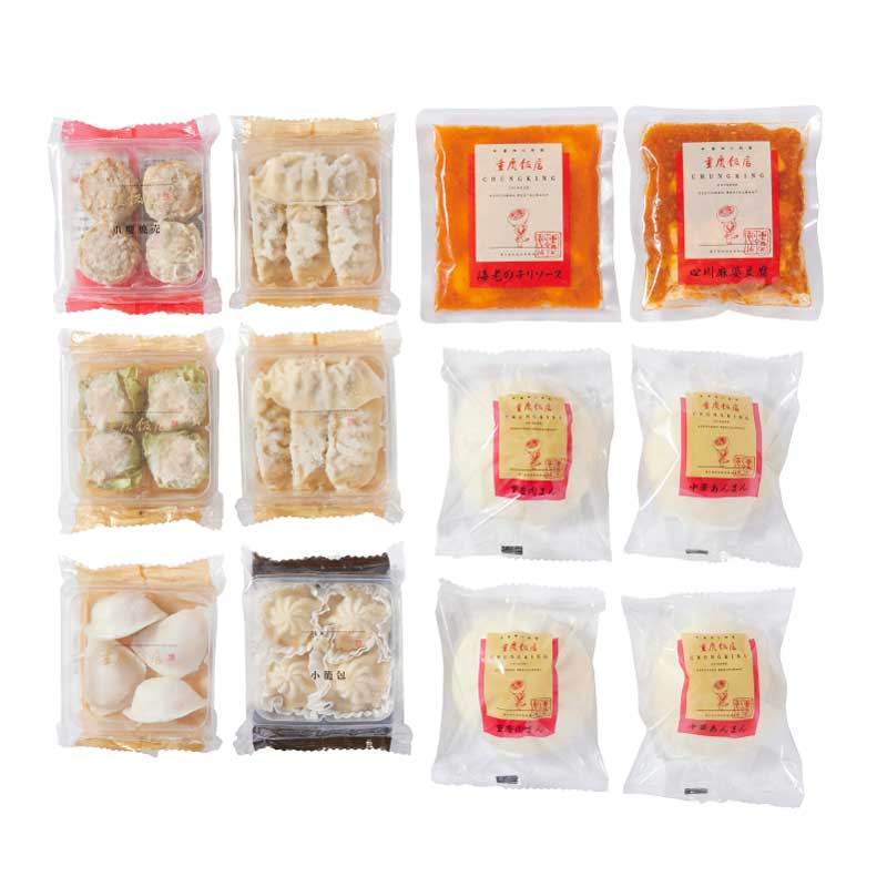 重慶焼売140g、餃子100g×2、蝦仁餃子100g、四川麻婆豆腐180g、
