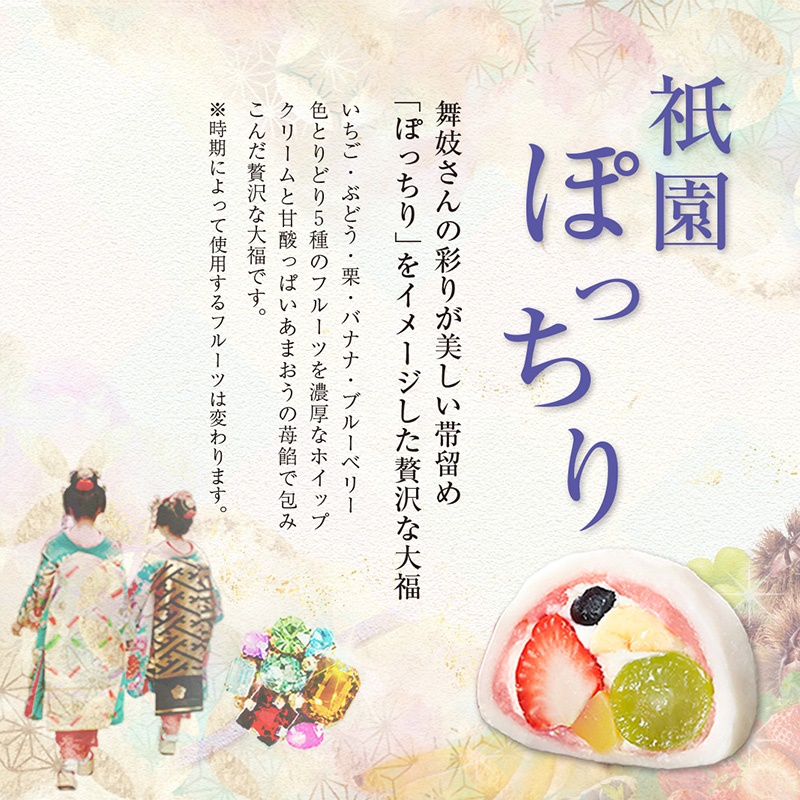 祇園ぽっちり×2、甘夏の福×2、抹茶クリームと渋皮くりの福×2 【特定原材料:小麦、乳】
