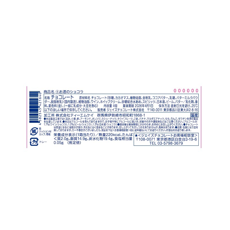 ※アレルギー表示およびアルコール分については、パッケージの裏面画像をご確認頂けますようお願い致します。
