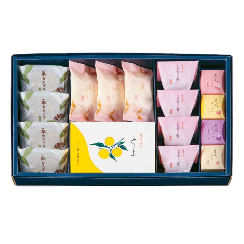 栗カステラ×4、白桃フィナンシェ×3、白雪の舞×4、