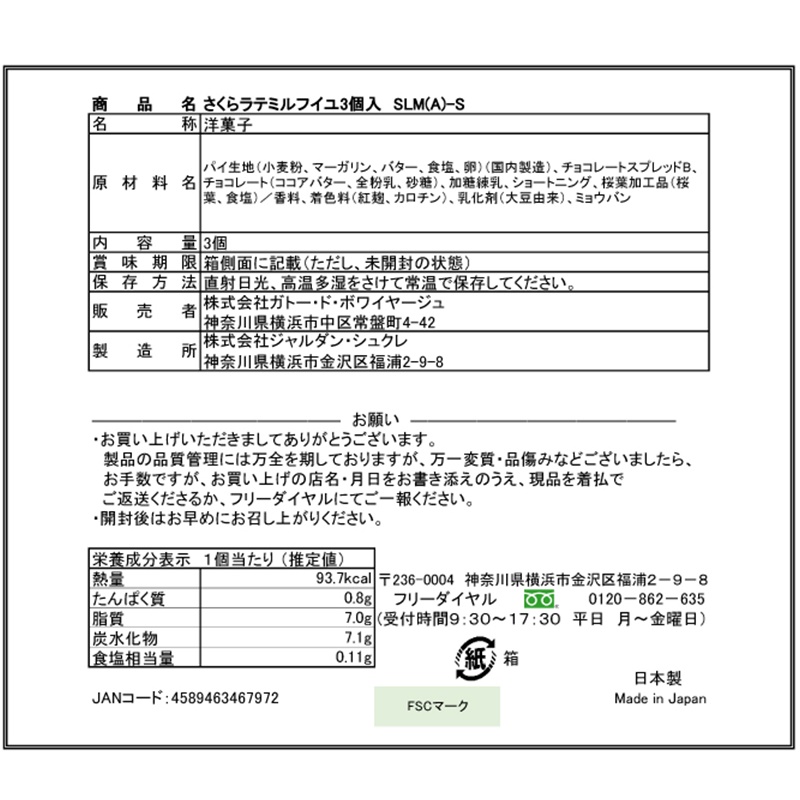 桜葉の塩漬け入りクリームと優しい甘さのミルククリームをサンドした 春限定ミルフイユ