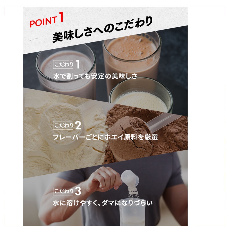 美味しさ、溶けやすさ、成分にとことんこだわったプロテイン。