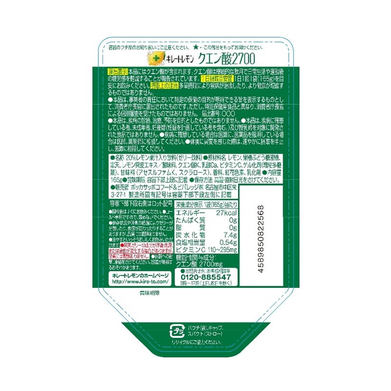 運動後の疲労感を軽減するクエン酸(機能性関与成分)が2700mg入った「機能性表示食品のレモンゼリー」です。