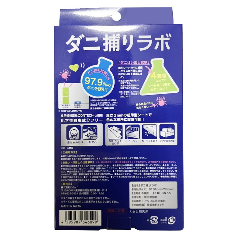 - ●生地…不織布●誘引剤…食品添加物●粘着剤…アクリル系粘着剤●袋…プラ●箱、説明書、シール…紙