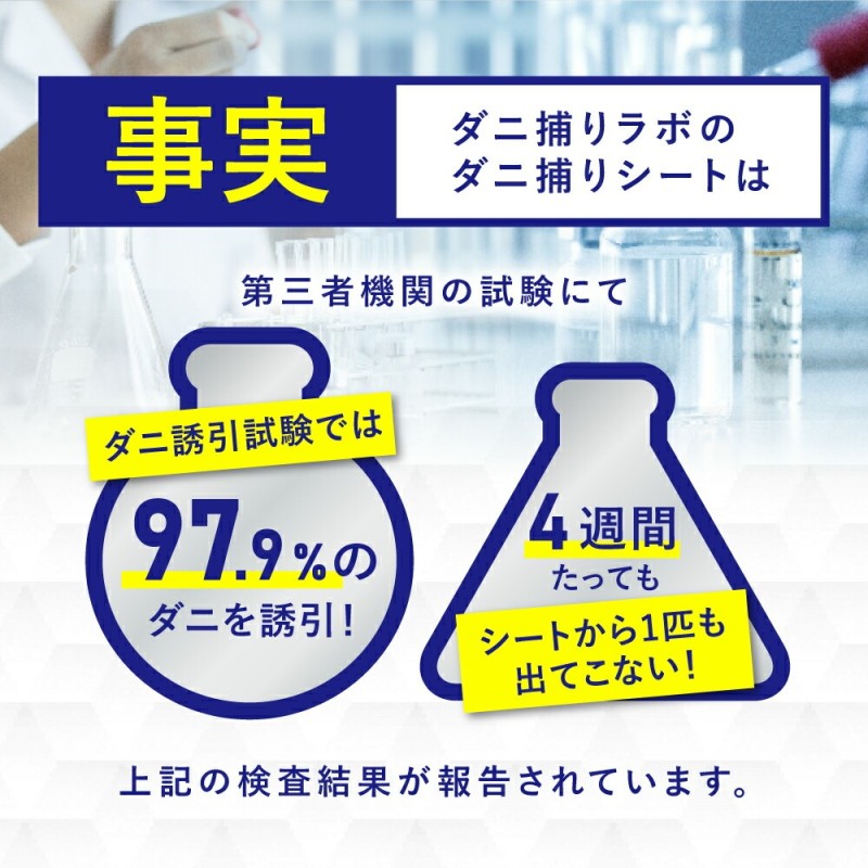 ●「ダニはい出し試験」…4週間たってもシートから1匹も出てこない。誘引シ-トの中に捕獲したダニが外部に逃げ出さないか確認