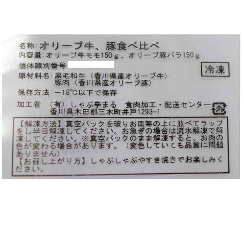 オリーブ牛赤身、オリーブ豚バラスライス合計300g