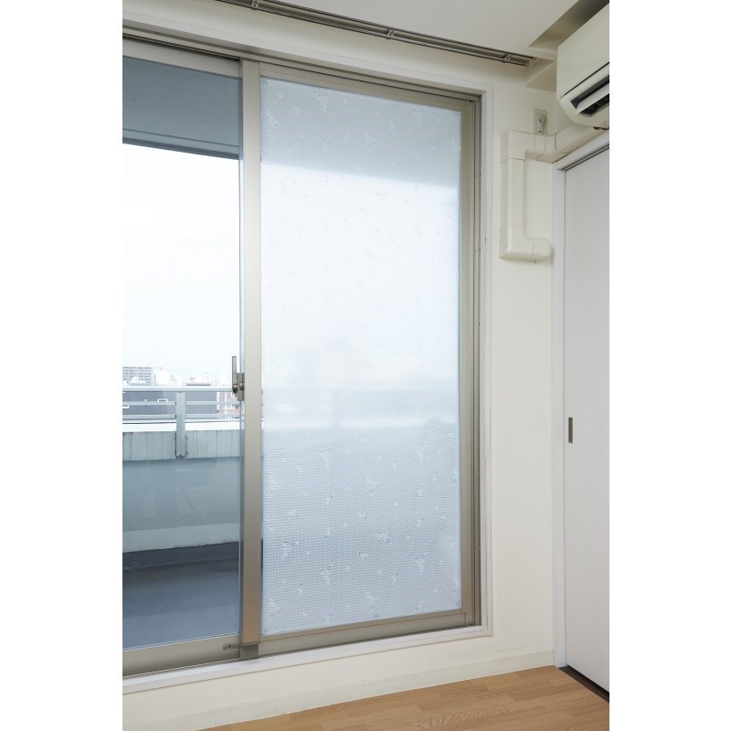 水もテープもいらないマドピタシート。断熱結露防止です。すりガラスにも貼れます。