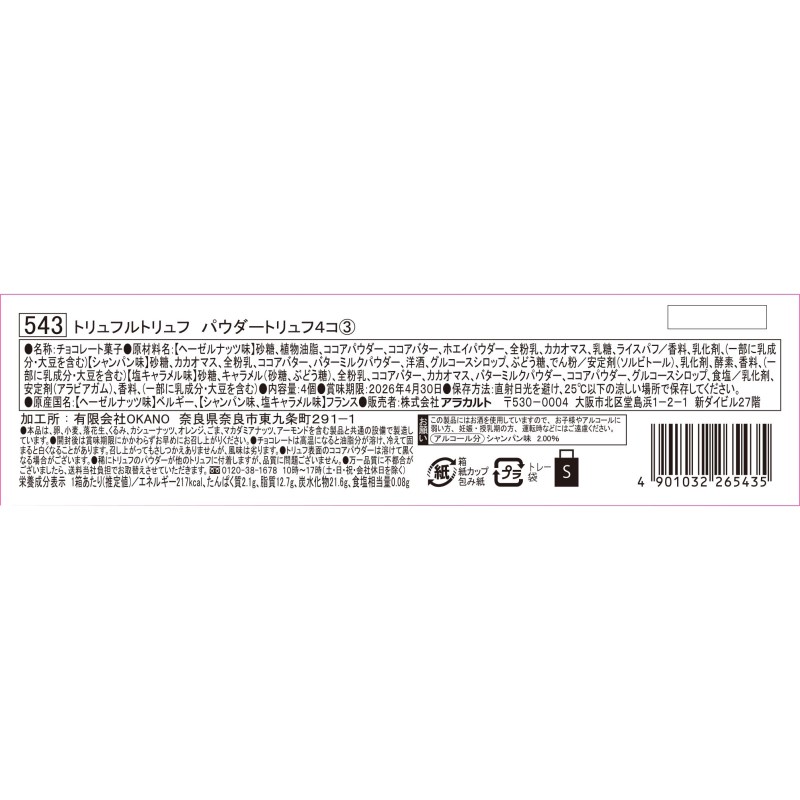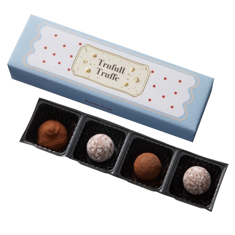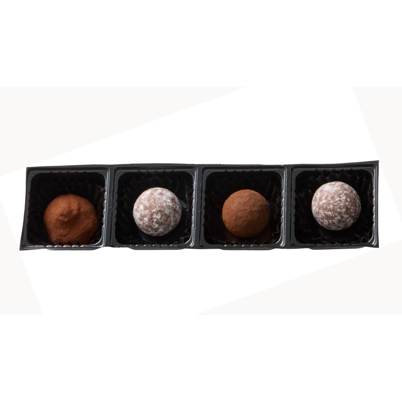 ふんわりパウダーが引き立てるなめらかトリュフ4粒入り。