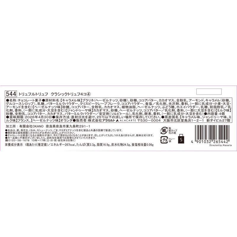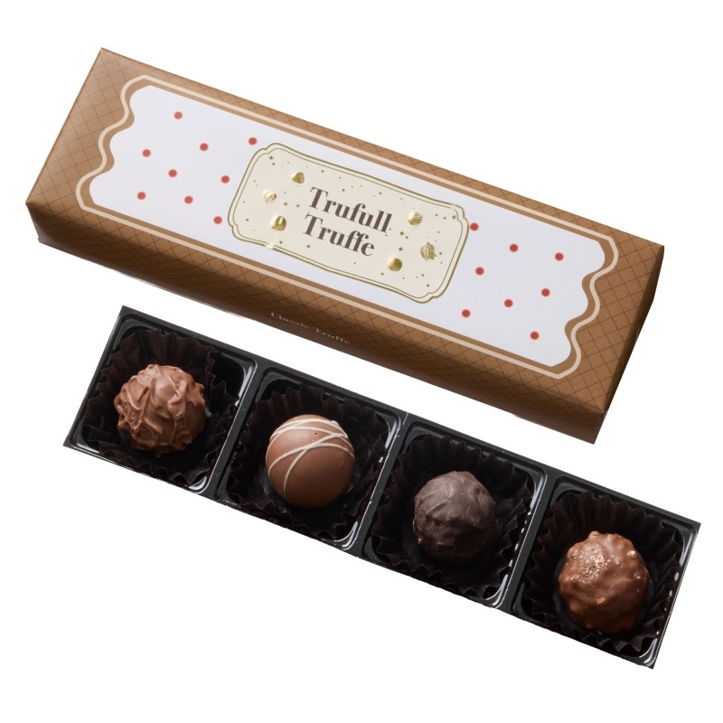 パキっと中はやわらかほどけるトリュフ4粒入り。
