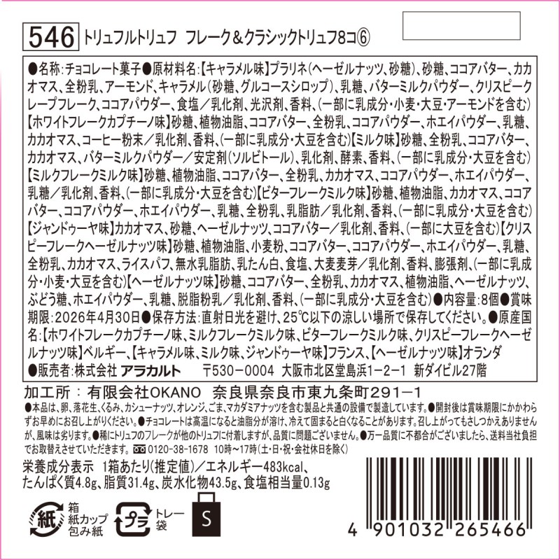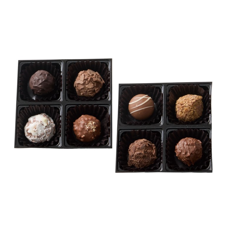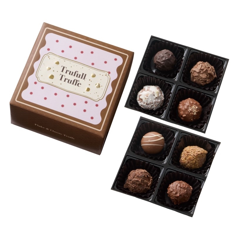 3層仕立ての多彩なくちどけなフレークトリュフと風味豊かなクラシックトリュフ8粒入り。