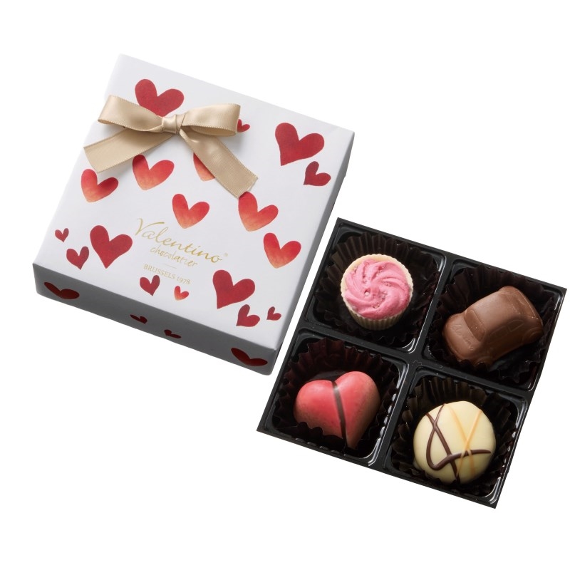 ベーシックなショコラとスイーツフレーバーショコラのアソート4粒入り。