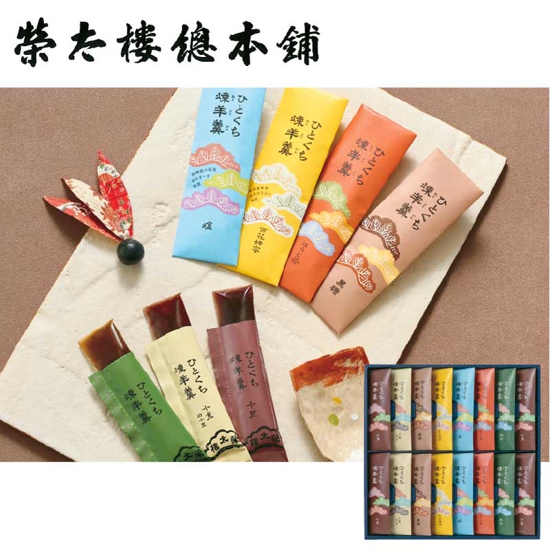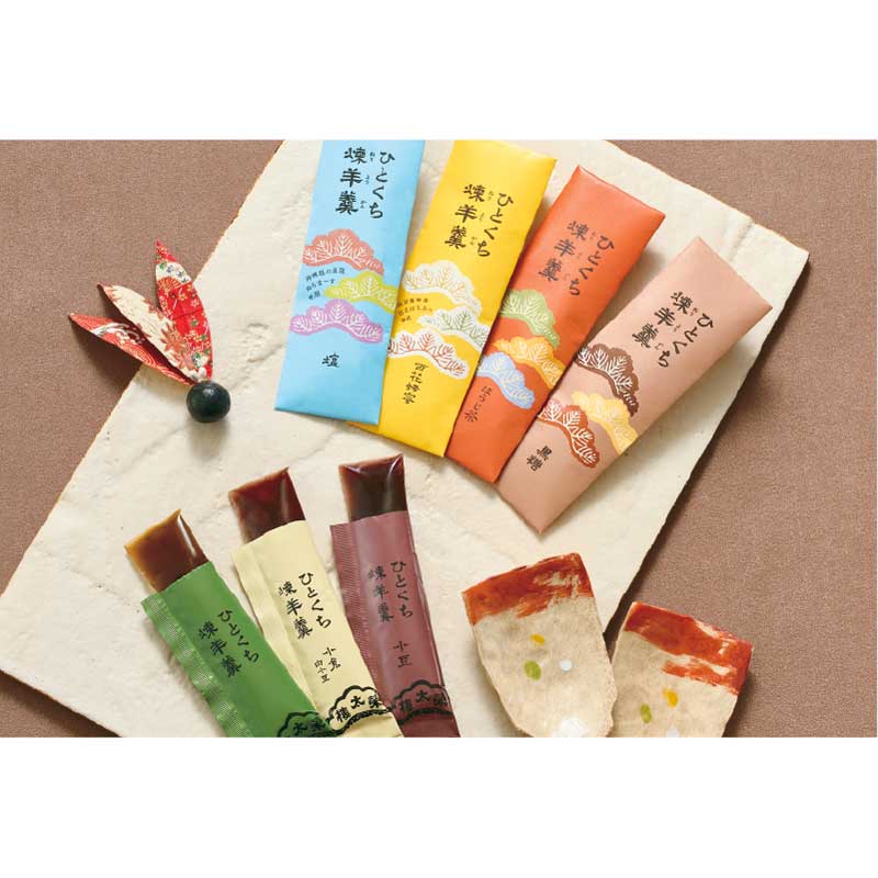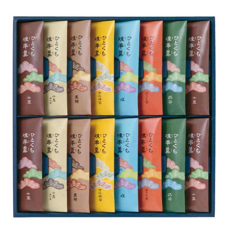 ひとくち煉羊羹(小豆×4、ほうじ茶×2、抹茶×2、小倉白小豆×2、百花蜂蜜×2、塩×2、黒糖×2)計16