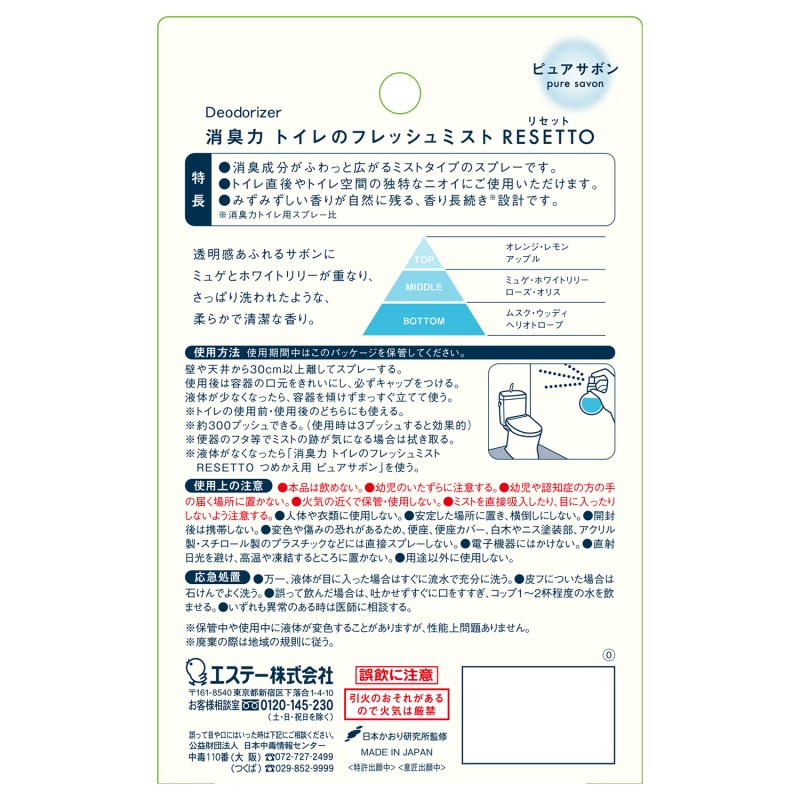 ●トイレ直後やトイレ空間の独特なニオイにご使用いただけます。