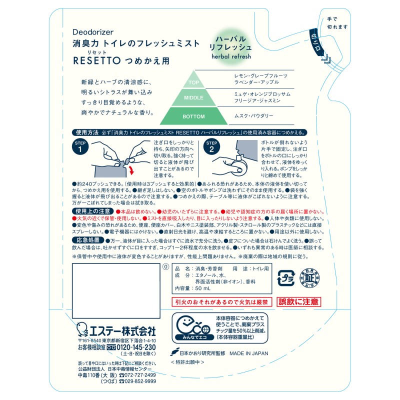 - エタノール、水、界面活性剤(非イオン)、香料